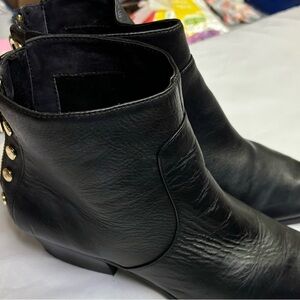 Vince Camuto Black Leather Bootie with gold zipper and studs Size 8 1/2 in gently used condition
