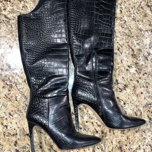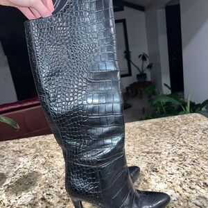 Vince Camuto Black Leather Croc-Embossed Knee High Boots – Size 7.5