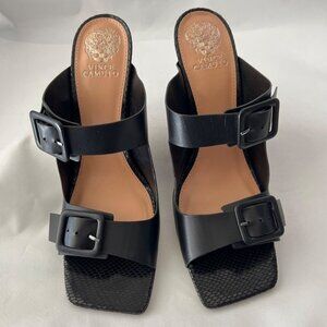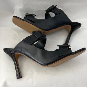Vince Camuto Black Leather Heeled Sandals Babenet Buckle Heels Women Size 12M