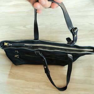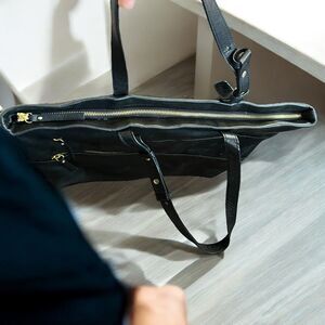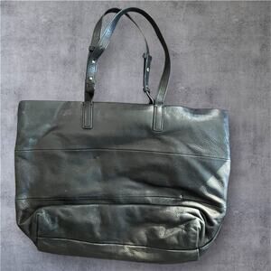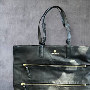 Vince Camuto Black Leather Meg Tote Bag Women’s Purse Gold Zip Detail 18x12