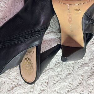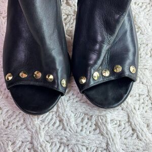 Vince Camuto Black Leather Peep Toe Heel Booties w/ Gold Tone Studs Women's 7.5M