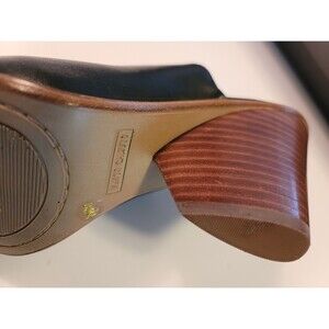 Vince Camuto Black Leather Platform Slide Wedge Wood Heel Sandals, Sz 7 Dormina