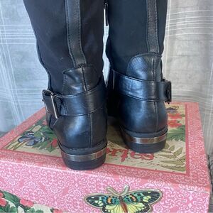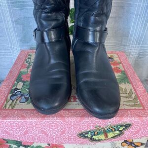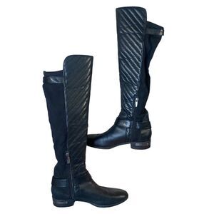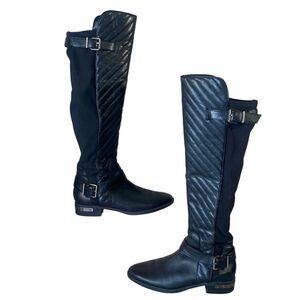 Vince Camuto Black Leather Quilted Knee-High Boots Womens Size 6.5 Buckle Detail