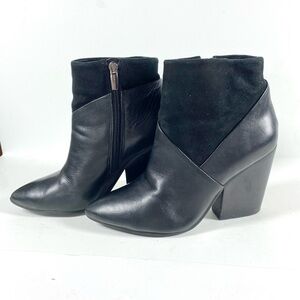 Vince Camuto Black Leather Suede Block Heel Raylan Ankle Booties Boots Size 8.5