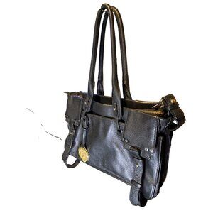 Vince Camuto Black Leather Tote Bag Double Handles Buckle Detail
