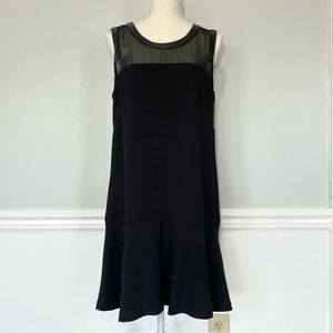 Vince Camuto Black Leather Trim Animal Edge Shift Dress Size 8
