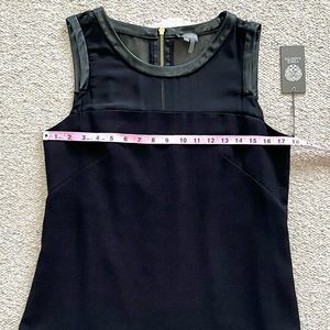 Vince Camuto Black Faux Leather Trim Animal Edge Shift Dress new with tags. No flaws. Size 8, measurements are shown in photos.