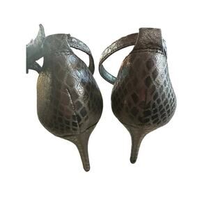 Keywords: Vince Camuto heels, snakeskin heels, stiletto sandals, black patent heels, ankle strap heels, evening shoes, wedding guest shoes, date night heels, size 8 dress shoes, designer heels women.