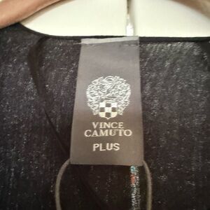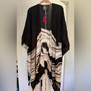 Elegant black top by Vince Camuto. Perfect for any occasion. Wave Stripe Ruana. Needs a stitch in right under arm. Open front with tassels on bottom. Brand new and never worn with tags.