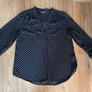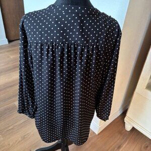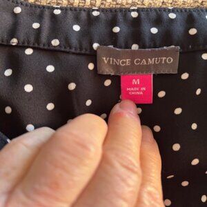 Vince Camuto Black Polka Dot 3/4 Sleeve V Neck Blouse EUC M