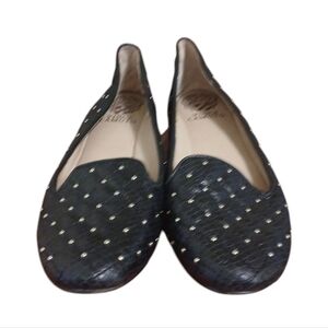 Vince Camuto Black Quilted Studded Flats Loafers Size 8