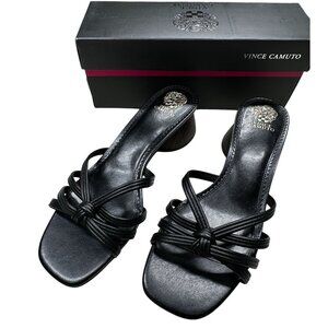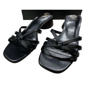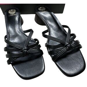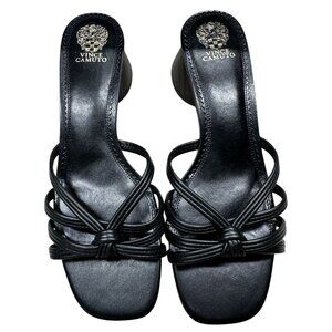 Vince Camuto Black Sandal Womens Size 11 Laniah Leather Strappy Heeled Slip-On