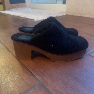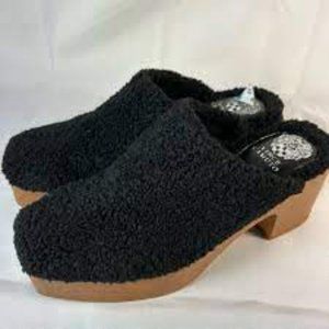 Experience plush comfort and elevation in the Rimindel mule from Vince Camuto. Boasting fuzzy faux shearling upper, this slip-on features a chic square toe design and wooden block heel for optimal style.