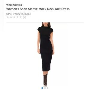 Vince Camuto Black Short Sleeve Mock Neck Knit Dress