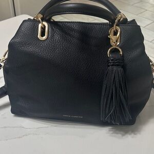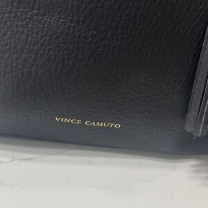 Chic black shoulder bag by Vince Camuto. Features luxurious gold hardware and a stylish tassel. Perfect for any occasion. Pre owned excellent condition. See pic for details.