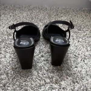 Sleek black slingback heels with a pointed toe. Ideal for elegant outings.