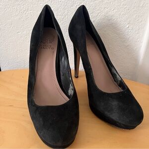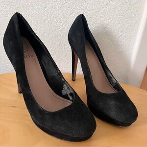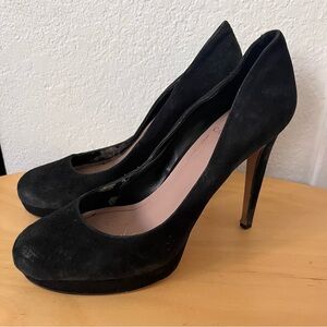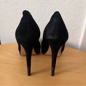 Make a statement! Very pretty suede heels. There is quite a bit of wear on the leather inside the shoes. Also on the heel. They look very good on though!