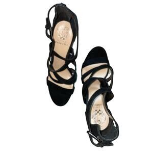 Vince Camuto Black True Suede Catyna Chunky High Heel Sandals size 10M New