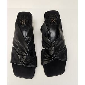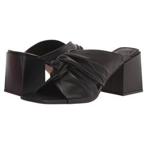 Vince Camuto Women's Black Twisted Strap VC-JEANABLE Square Toe Leather Slide Block Heel Sandal Shoes Size 7.5M