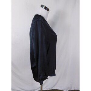 Vince Camuto Black V-Neck Long Sleeve Blouse S Corporate Goth