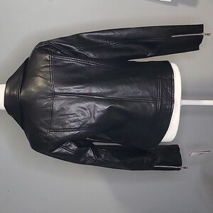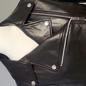 Vince Camuto Black Soft Vegan Leather Moto Jacket with Silvertone Zippers and Snaps in Size M