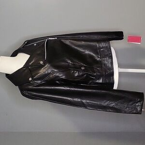 Vince Camuto Black Vegan Leather Moto Jacket with Silvertone Hardware-Size M