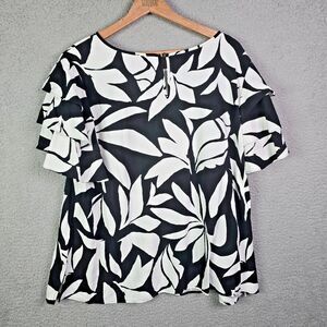 Vince Camuto Black White Abstract Print Tiered Sleeve Blouse Size 3X