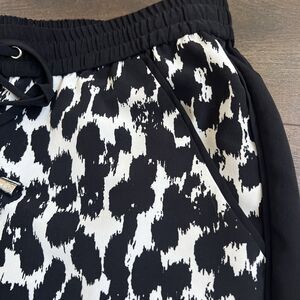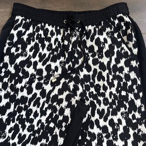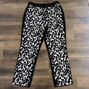 Vince Camuto Black White Leopard Print Pull On Lightweight Pants Size Small Fun