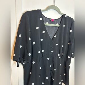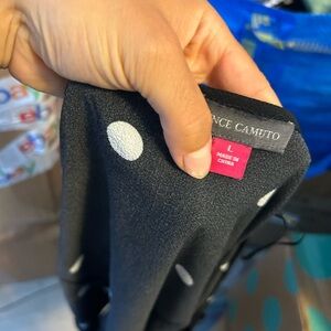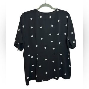 Pre owned excellent condition. Worn once or twice. Adorable black & white polka dot button front blouse with tie sleeves. So pretty and feminine. WOMENS size large.