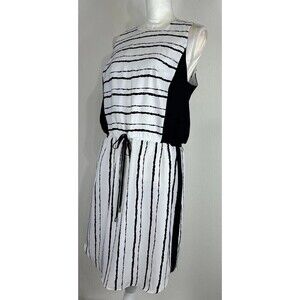 Vince Camuto Black & White Sleeveless Drawstring Waist Midi Dress Size 12