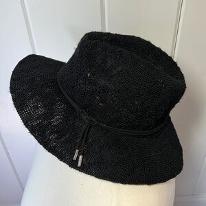 Vince Camuto Black Wide Brim Adjustable One Size Lightweight Airy Cloth Hat
