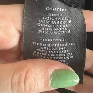 In good preowned condition. Unlined. Trench style details in a nice wool blend fabric. Snap closures. Ties around the waist.