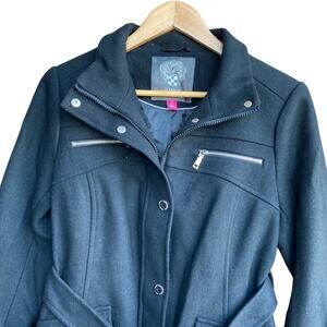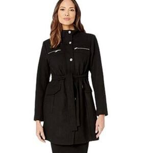 Vince Camuto Black Wool Blend Belted Trench Coat, Women's Size S, NWT
