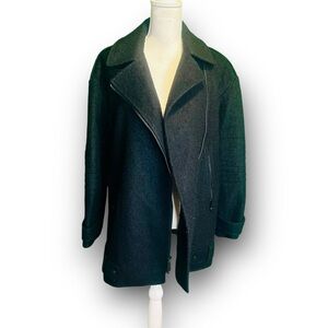 Vince Camuto Black Wool-Blend Moto Style Asymmetric Zip-Up Coat Size Medium