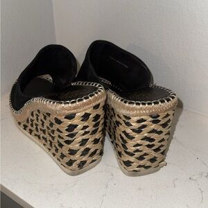 Vince Camuto Black and Gold Espadrille Slip-On Mules