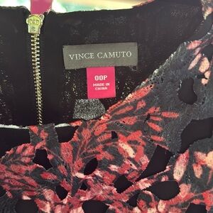 Vince Camuto Black and Red Floral Lace Dress Size 00 petite