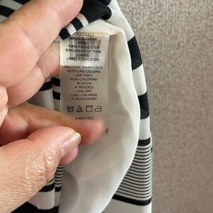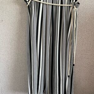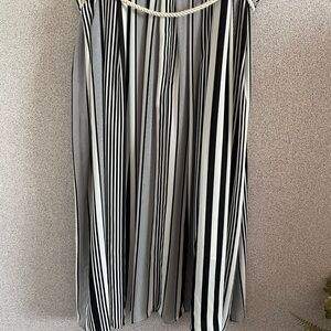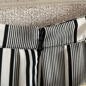 This elegant A-line skirt by Vince Camuto features a striking black and white design, perfect for casual or work settings. The midi length and flowy fabric offer a classic silhouette that drapes beautifully, adding a touch of sophistication to your wardrobe.