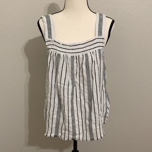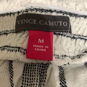 Stylish Vince Camuto top. Features black and white stripes. Sleeveless with wide straps. Perfect for casual wear.