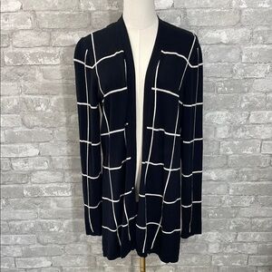 Vince Camuto Black and White Windowpane Cardigan Sweater