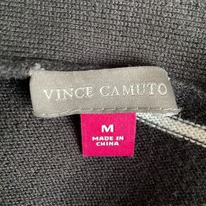 This Vince Camuto cardigan features a striking black and white grid pattern, offering a contemporary and versatile style. The open-front design and lightweight knit make it perfect for layering, while the long sleeves add a touch of elegance to any outfit.
