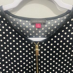 Vince Camuto Black Polka Dot Zip front Sleeveless Blouse Top Size Small