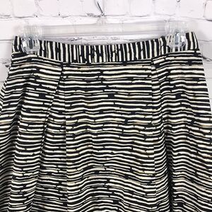 Vince Camuto Black cream tan Striped Full Pleated Skirt 10 EUC black hem lined