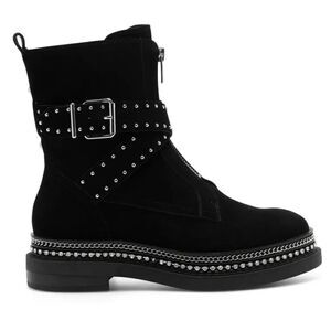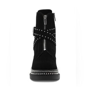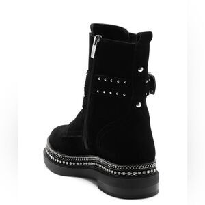 🔥Vince Camuto Blinda Black Suede Moto Chic Chain Rim PLatform Lug Bootie