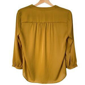 Vince Camuto Blouse Satin Mustard Yellow 3/4 Sleeve Quiet Luxury Minimalist M
