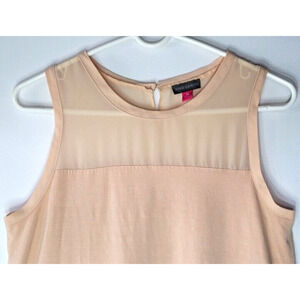 Vince Camuto Blouse Tank Womens M Pink Peach Blush Sheer Sleeveless Back Keyhole