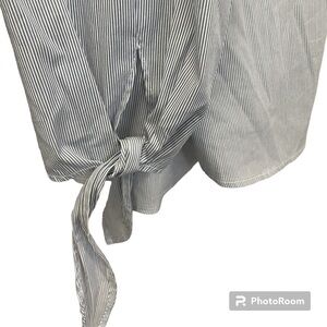 Vince Camuto Blouse Tie Sleeve Pinstripe Divine Blue Women's Size Medium