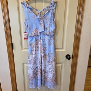 Vince Camuto Blue Floral Dress Sz 2 Lined Back Zip & Tie Sleeveless NWT Pockets
