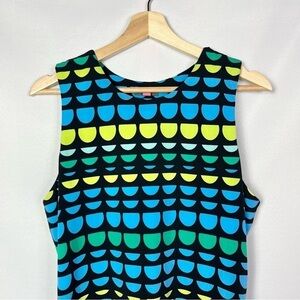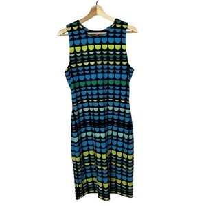 Vince Camuto Blue & Green Scallop Printed Sheath Dress M