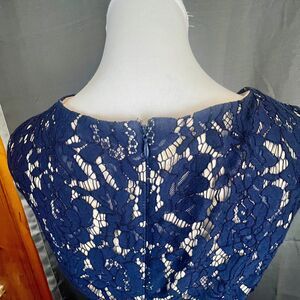 Vince Camuto Blue Lace Overlay Sleeveless A-Line Short Dress Cocktail ~ Sz 8