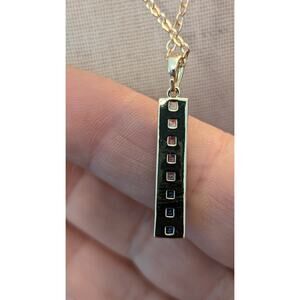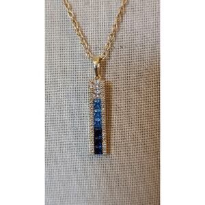 Vince Camuto Blue Ombre Channel Set Crystal Gold Tone Necklace NWOT . Protective cover still on hangtag. Beautiful necklace. Pre-owned it is in NWOT condition. Measures 18-21" long, and pendant measures 1" long. Gorgeous sparkle on these crystals.